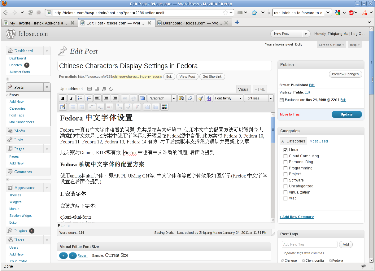 Fedora 一直有中文字体难看的问题, 尤其是在英文环境中. 使用本文中的配置方法可以得到令人满意的中文效果. 此方案中使用字体都为开源且在Fedora源中自带. 此方案对 Fedora 9 – 20 有效. 对于后续版本支持我会确认并更新此文章.