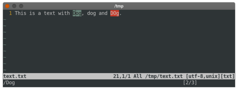 For example, the search with /dog\c is always case insensitive. And /dog\C is always case sensitive.