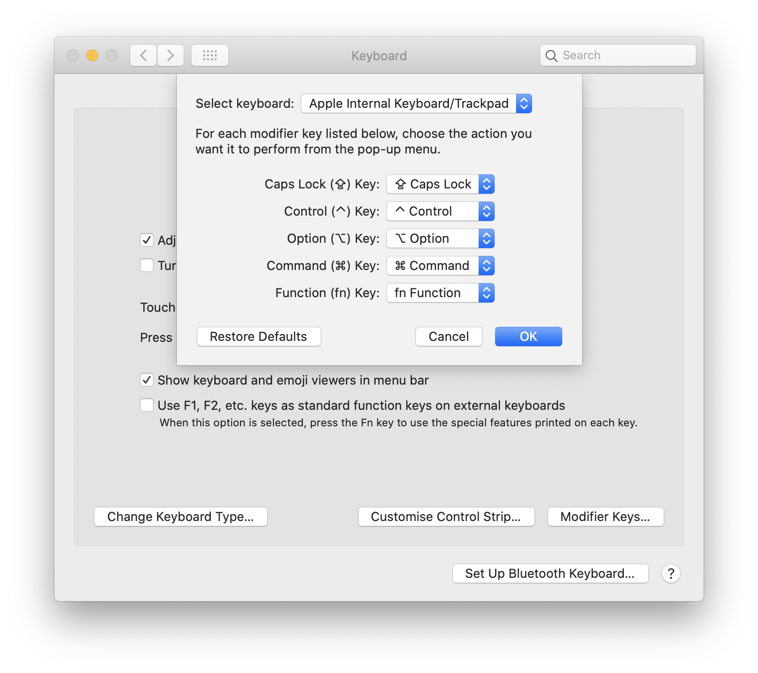 The drawback of this method is that the macOS’ settings will map both Options keys to Control keys, although we already have a Control key on the left side of the keyboard.